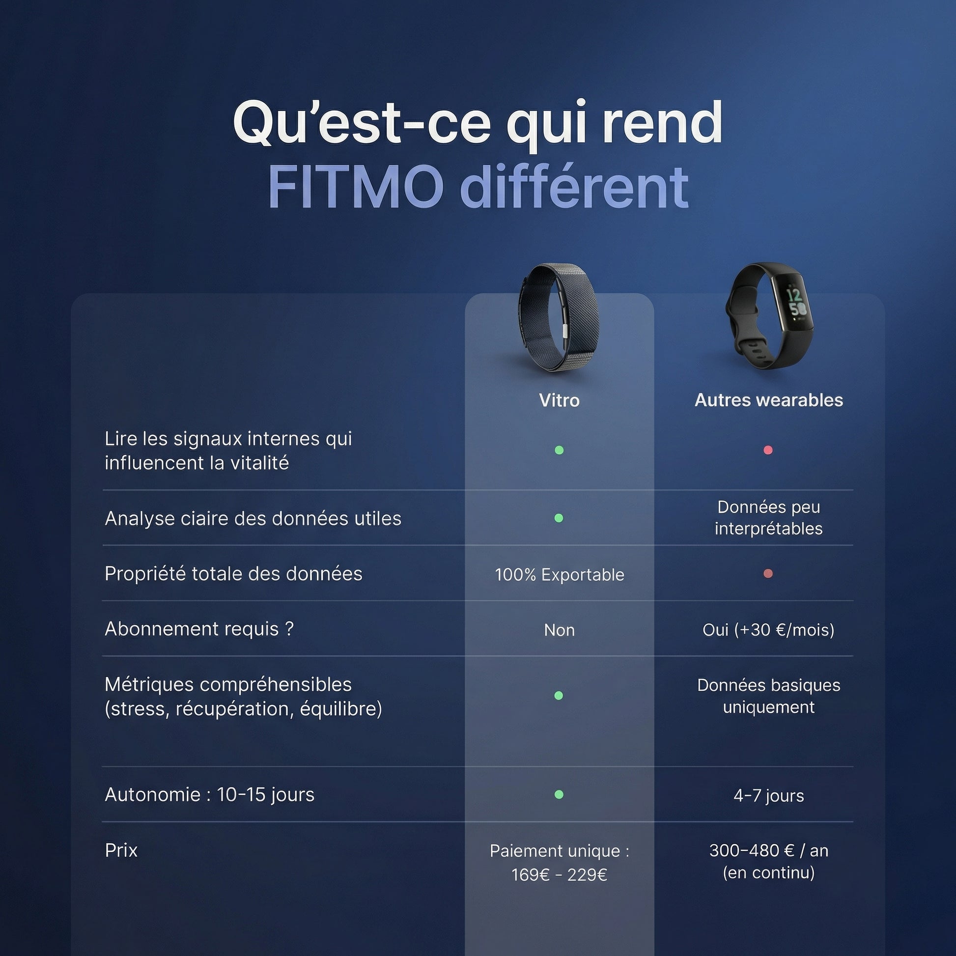Vitro mesure ce qui se passe à l'intérieur de votre corps, pas seulement vos mouvements.